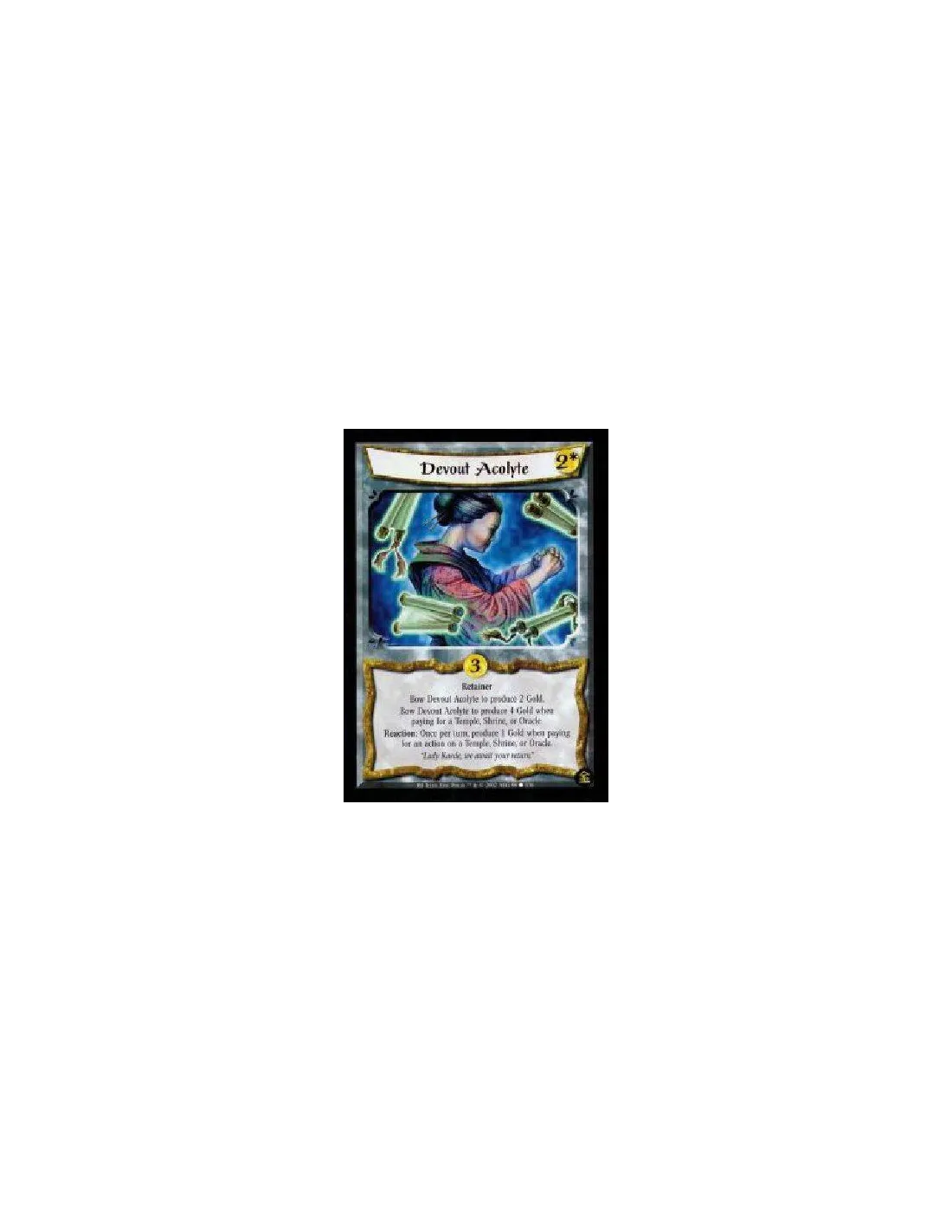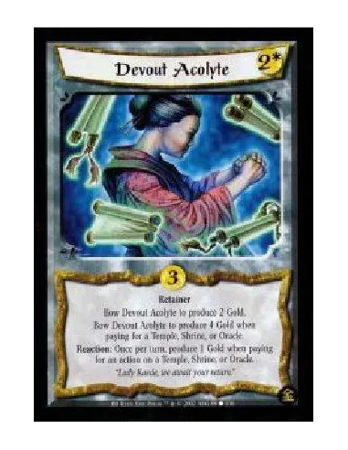 Retainer Bow Devout Acolyte to produce 2 Gold. Bow Devout Acolyte to produce 4 Gold when paying for a Temple, Shrine, or Oracle. Reaction: Once per turn, produce 1 Gold when paying for an action on a Temple, Shrine, or Oracle.