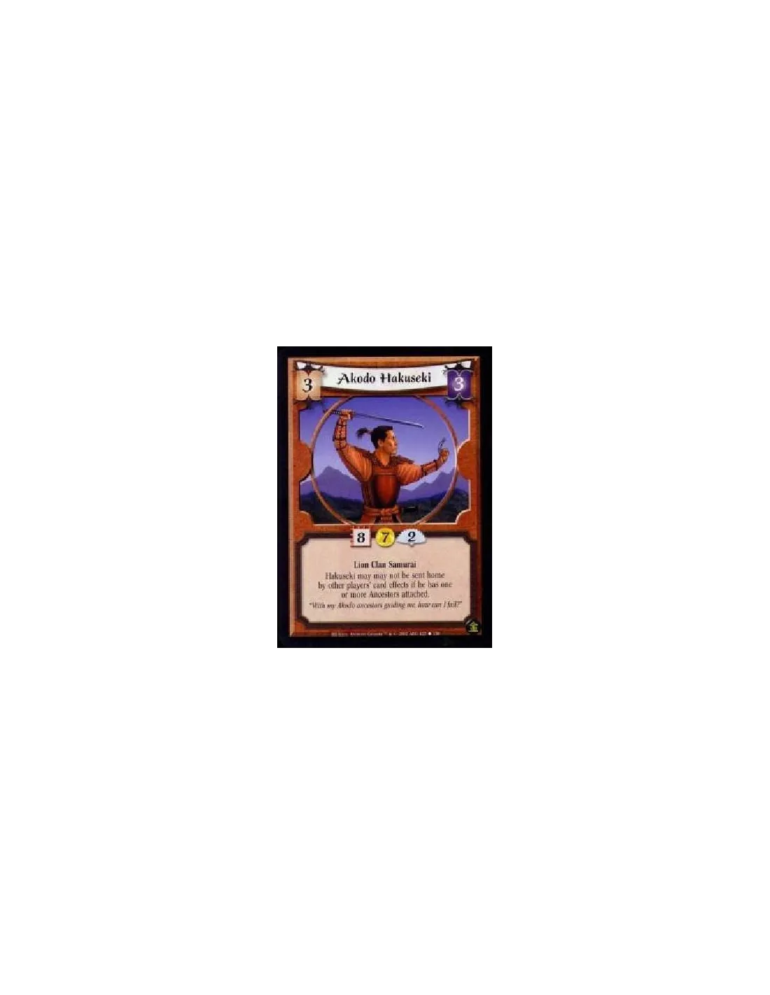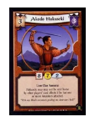 Lion Clan Samurai Hakuseki may may not be sent home by other players' card effects if he has one or more Ancestors attached.