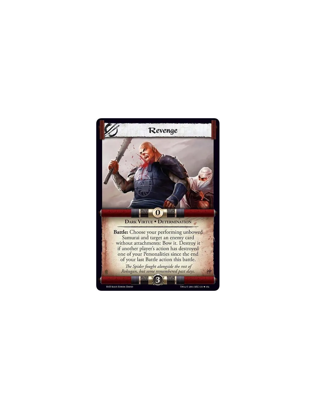 Battle: Choose your performing unbowed Samurai and target an enemy card without attachments: Bow it. Destroy it if another player’s action has destroyed one of your Personalities since the end of your last Battle action this battle.