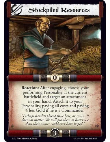 Reaction: After engaging, choose your performing Personality at the current battlefield and target an attachment in your hand: Attach it to your Personality, paying all costs and paying 4 less Gold if he is a Commander.