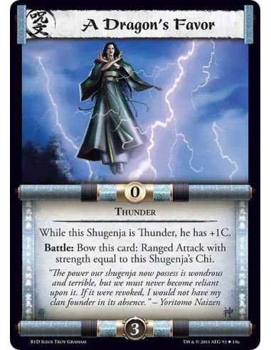 While this Shugenja is Thunder, he has +1C. Battle: Bow this card: Ranged Attack with strength equal to this Shugenja’s Chi.