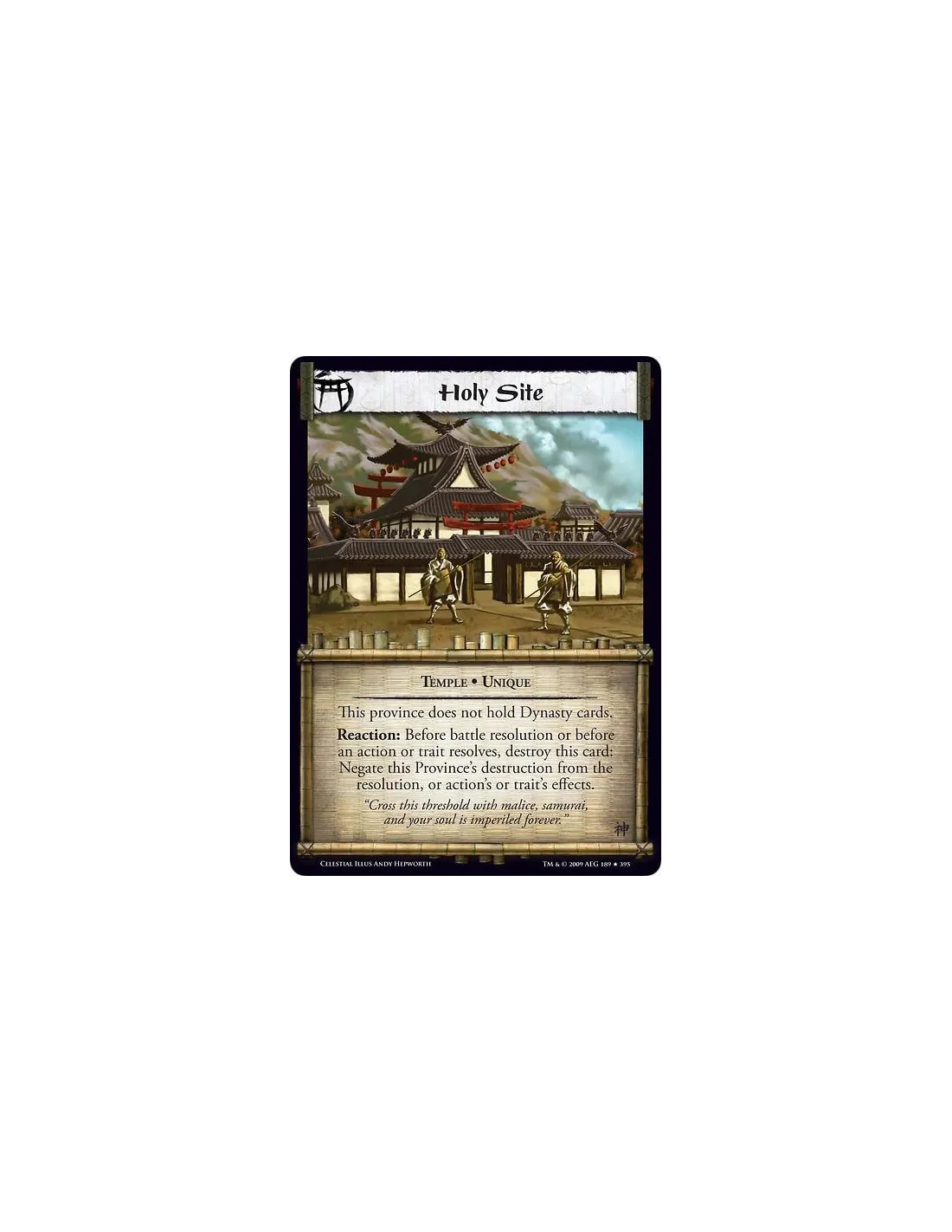 Temple • Unique This province does not hold Dynasty cards. Reaction: Before battle resolution or before an action or trait resolves, destroy this card: Negate this Province’s destruction from the resolution, or action’s or trait’s effects.