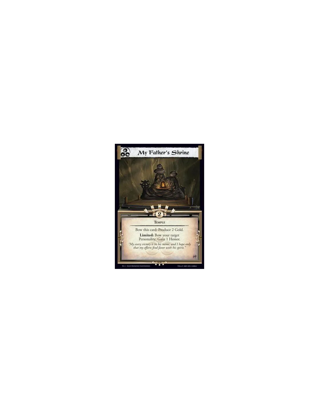 Temple Bow this card: Produce 2 Gold. Limited: Bow your target Personality: Gain 1 Honor.
