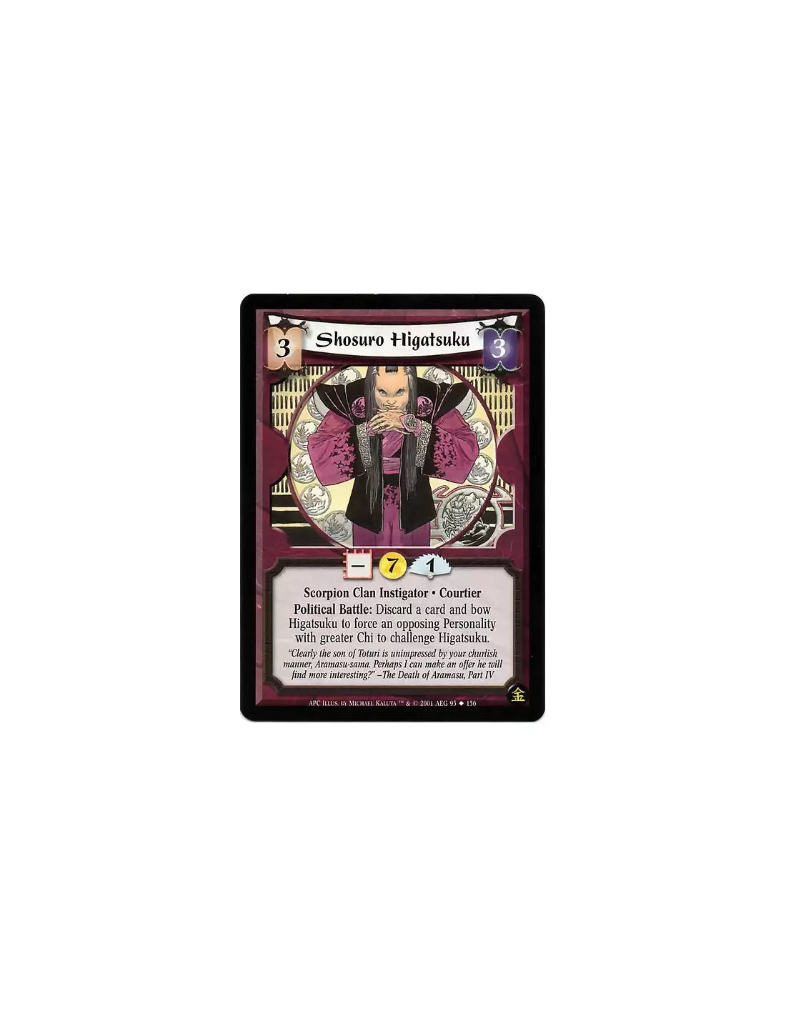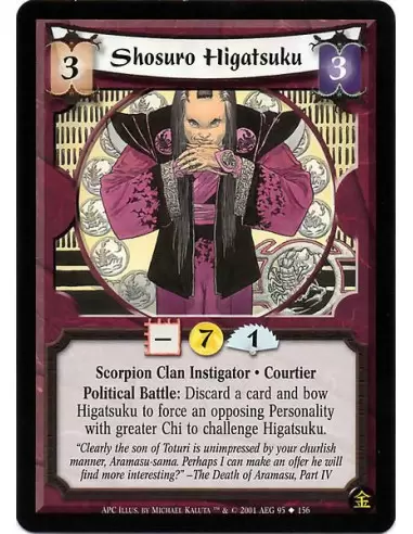 Scorpion Clan Instigator · Courtier. Political Battle: Bow Higatsuku: Target an opposing Personality with greater Chi than Higatsuku. He challenges Higatsuku.