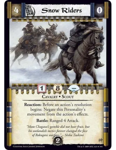 Cavalry • Scout Reaction: Before an action's resolution begins: Negate this Personality's movement from the action's effects. Battle: Ranged 4 Attack.