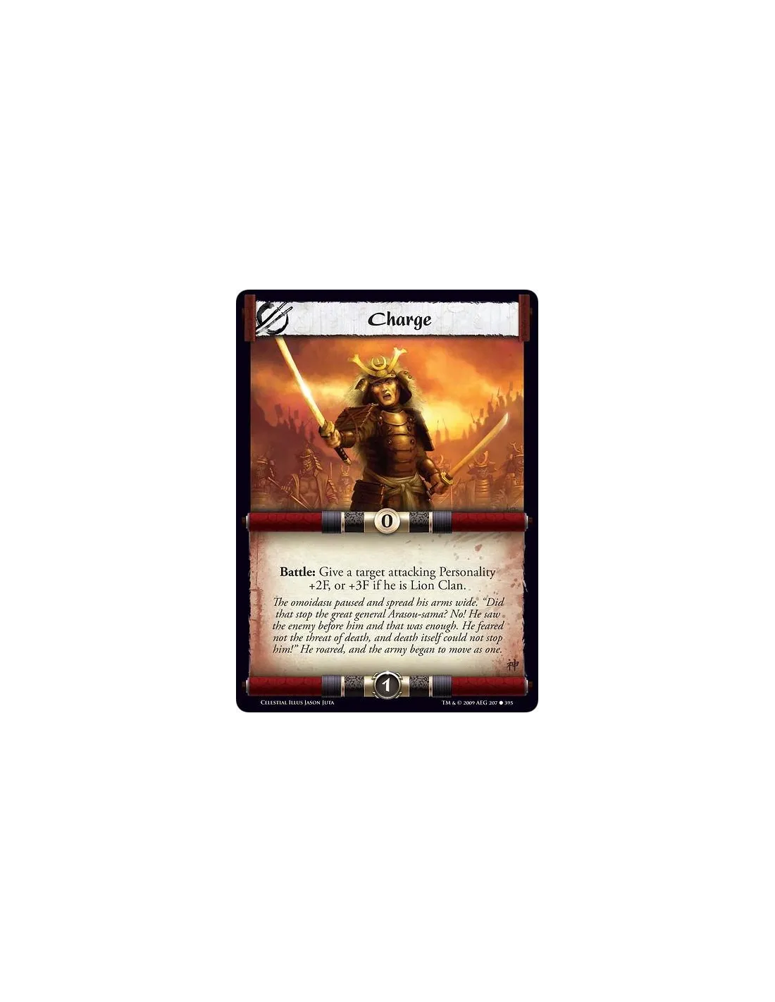 Battle: Give a target attacking Personality +2F, or +3F if he is Lion Clan.