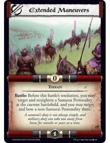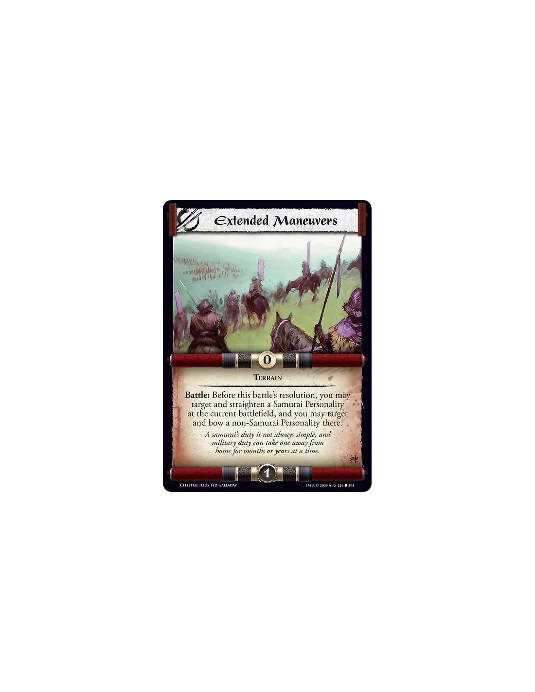 Terrain Battle: Before this battle’s resolution, you may target and straighten a Samurai Personality at the current battlefield, and you may target and bow a non-Samurai Personality there.