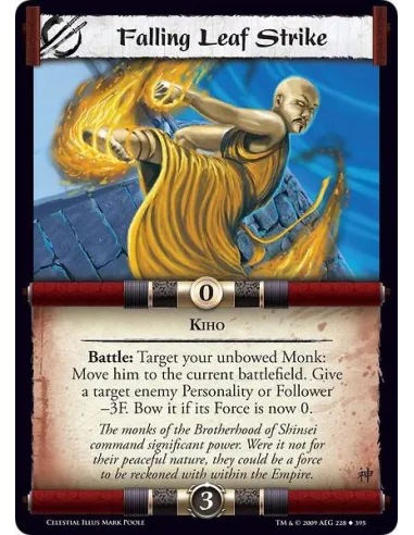 Kiho Battle: Target your unbowed Monk: Move him to the current battlefield. Give a target enemy Personality or Follower -3F. Bow it if its Force is now 0.