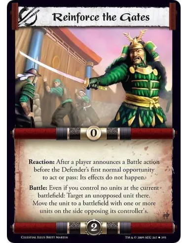 Reaction: After a player announces a Battle action before the Defender’s first normal opportunity to act or pass: Its effects do not happen. Battle: Even if you control no units at the current battlefield: Target an unopposed unit there. Move the unit to a battlefield with one or more units on the side opposing its controller's.