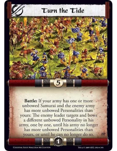 Battle: If your army has one or more unbowed Samurai and the enemy army has more unbowed Personalities than yours: The enemy leader targets and bows a different unbowed Personality in his army, one by one, until his army no longer has more unbowed Personalities than yours, or until he can no longer do so.