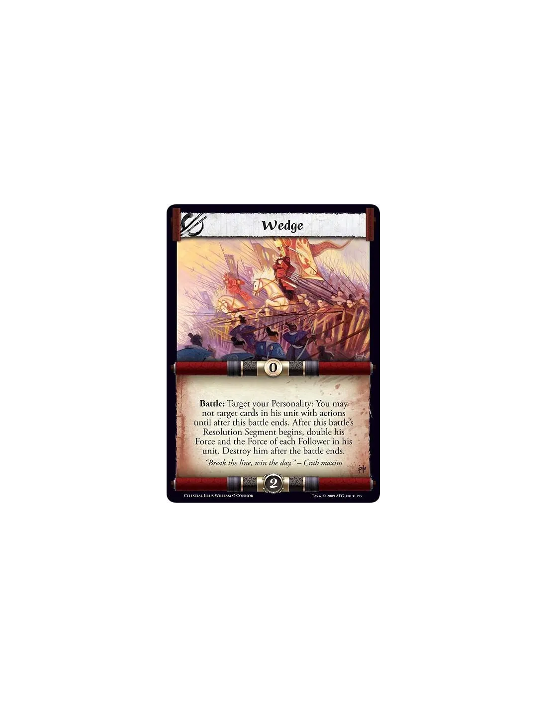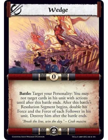 Battle: Target your Personality: You may not target cards in his unit with actions until after this battle ends. After this battle’s Resolution Segment begins, double his Force and the Force of each Follower in his unit. Destroy him after the battle ends.