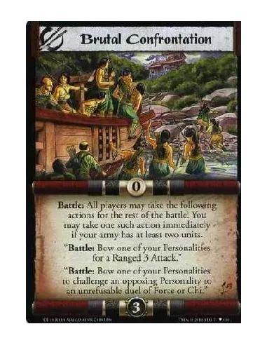 Battle: All players may take the following actions for the rest of the battle. You may take one such action immediately if your army has at least two units. "Battle: Bow one of your Personalities for a Ranged 3 Attack." "Battle: Bow one of your Personalities to challenge an opposing Personality to an unrefusable duel of Force or Chi."