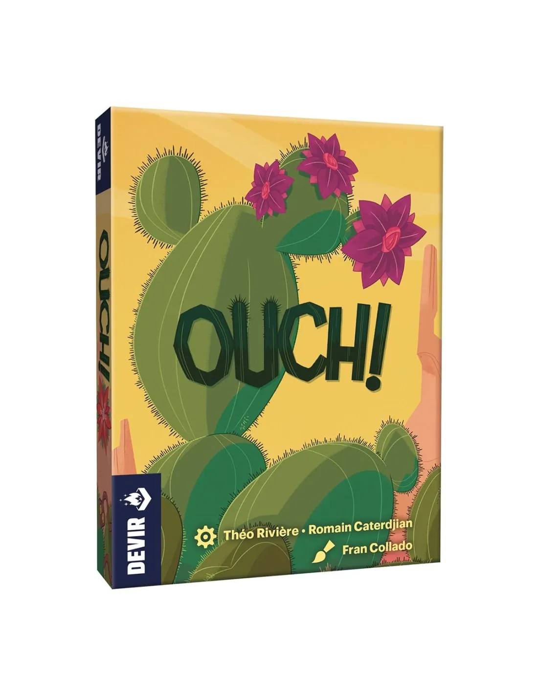 Los cactus del desierto esconden flores de gran belleza... ¡Pero cuidado con los pinchos! Para ganar en Ouch! deberéis coleccionar las flores más hermosas del desierto, evitando tocar los afilados pinchos del cactus. Contaréis con la ayuda de víboras y fenecs, mientras alternáis turnos para juntar el ramo más vistoso. Ouch! es un divertido juego de cartas al que puedes jugar con los más pequeños de casa o entre amigos. ¡Vigila donde pones los dedos!