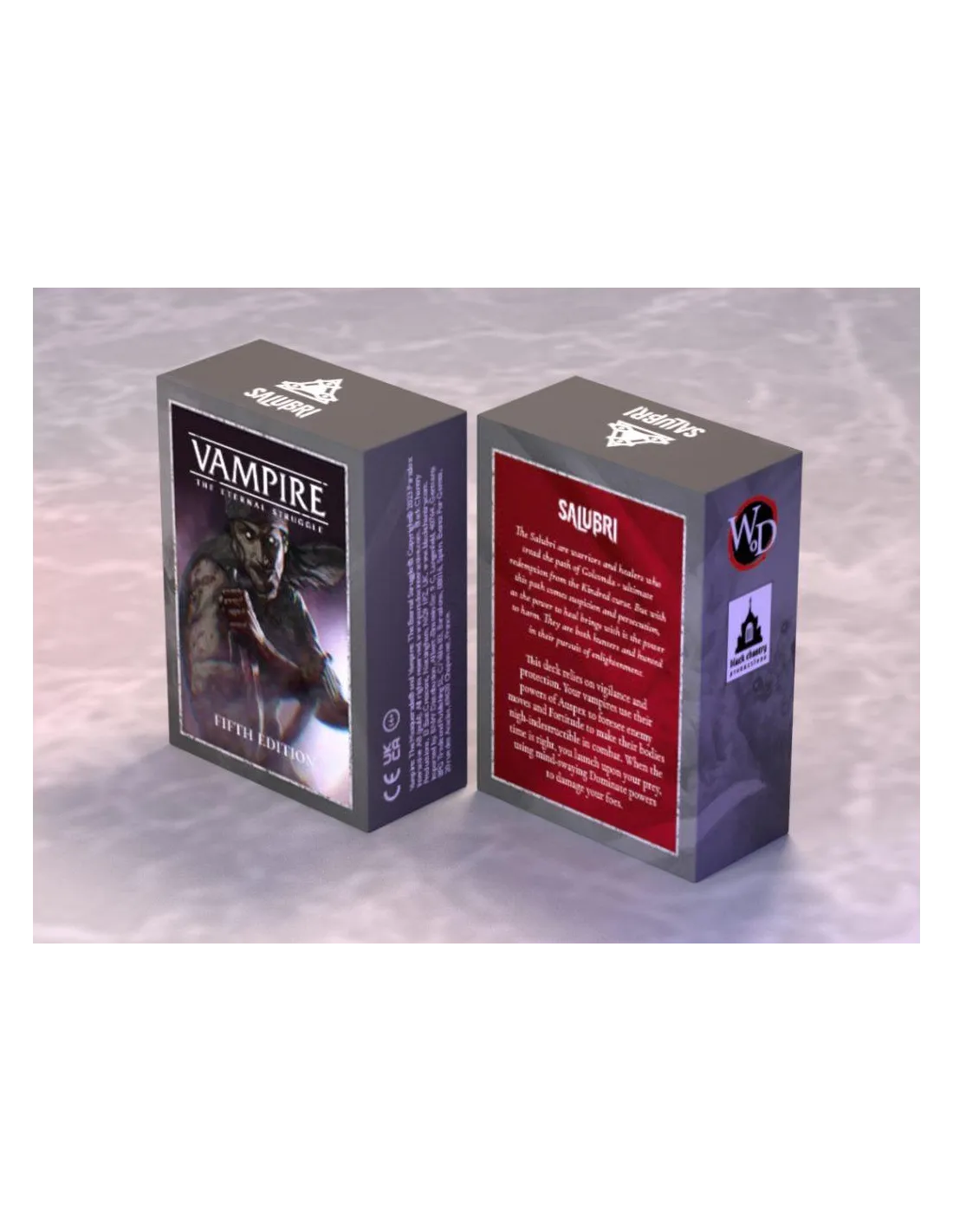 This is a deck with 77 library cards and 12 crypt cards, ready for play out of the box or customizable with other Vampire: The Eternal Struggle cards. Each player needs a deck to play.