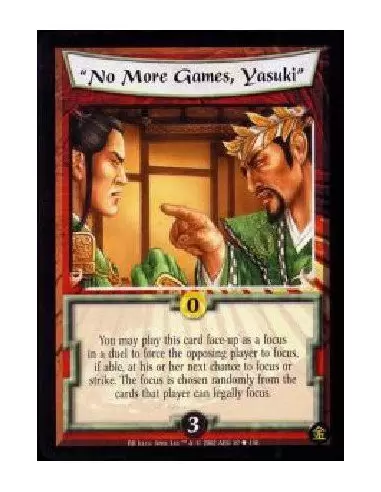 You may play this card face-up as a focus in a duel to force the opposing player to focus, if able, at his or her next chance to focus or strike. The focus is chosen randomly from the cards that player can legally focus.