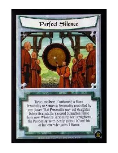 Target and bow (if unbowed) a Monk Personality or Shugenja Personality controlled by any player. That Personality may not straighten before its controller's second Straighten Phase from now. When the Personality next straightens, the Personality permanently gains +1C and his or her controller gains 3 Honor.