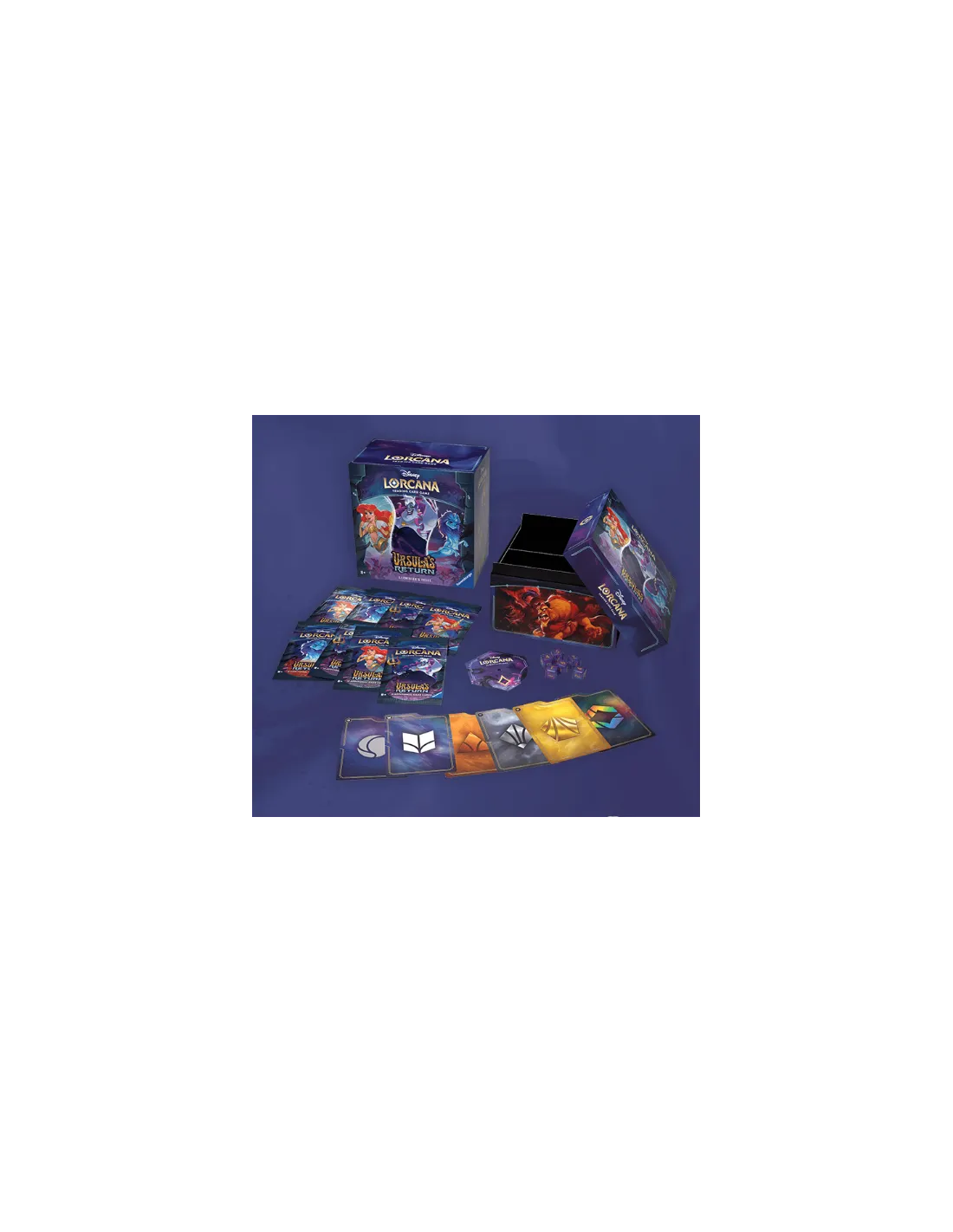 The ultimate treasure for both collectors and players, the Illumineer’s Trove includes a full-art storage box with 6 ink-themed card dividers to keep your Disney Lorcana TCG cards safe and organized.