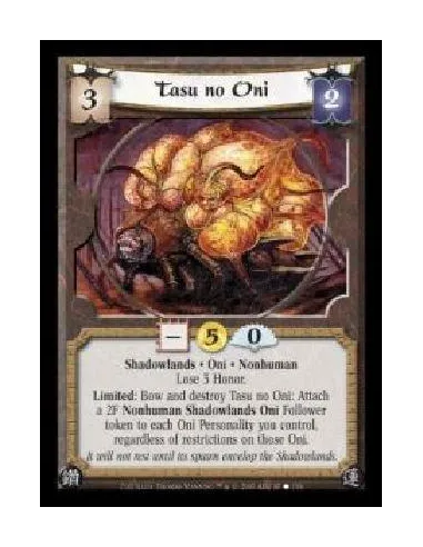 Shadowlands · Oni · Nonhuman · Lose 3 Honor. Limited: Bow and destroy Tasu no Oni: Attach a 2F Nonhuman Shadowlands Oni Follower token to each Oni Personality you control, regardless of restrictions on those Oni.