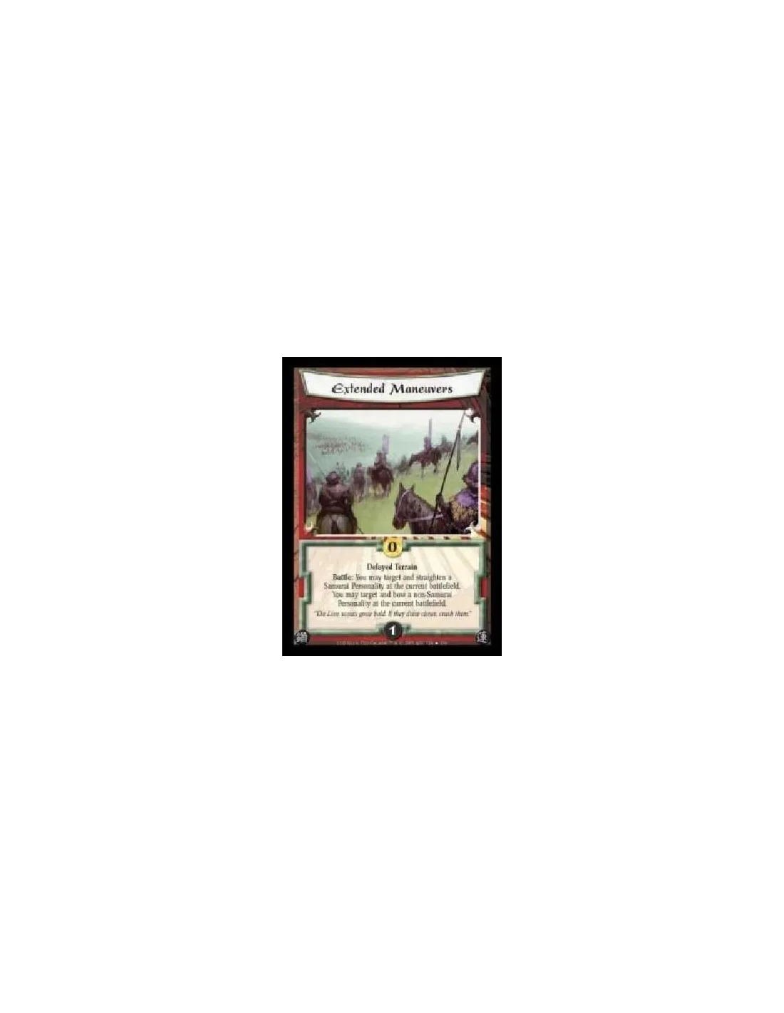 Delayed Terrain. Battle: You may target and straighten a Samurai Personality at the current battlefield. You may target and bow a non-Samurai Personality at the current battlefield