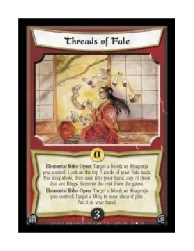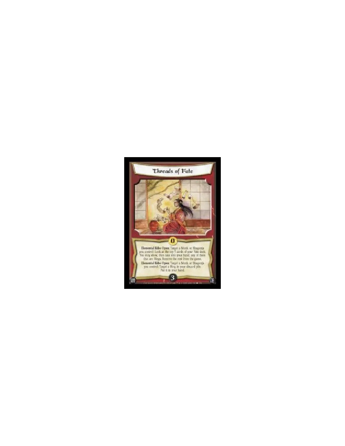 Elemental Kiho Open: Target a Monk or Shugenja you control: Look at the top 5 cards of your Fate deck. You may show, then take into your hand, any of them that are Rings. Remove the rest from the game. Elemental Kiho Open: Target a Monk or Shugenja you control: Target a Ring in your discard pile. Put it in your hand