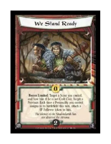Recon Limited: Target a Scout you control, and bow him if he is not Crab Clan: Target a Province. Each time a Personality you control assigns to its battlefield this turn, attach a 0F Follower token to him.