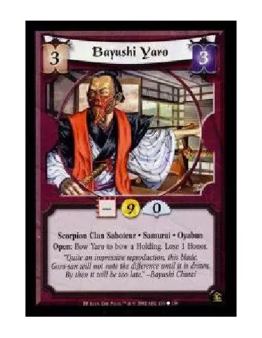 Scorpion Clan Saboteur. Samurai. Oyabun Open: Bow Yaro to bow a Holding. Lose 1 Honor.