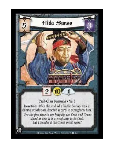Crab Clan Samurai * Yu 3 Reaction: After the end of a battle Sunao was in during resolution, discard a card to straighten him.