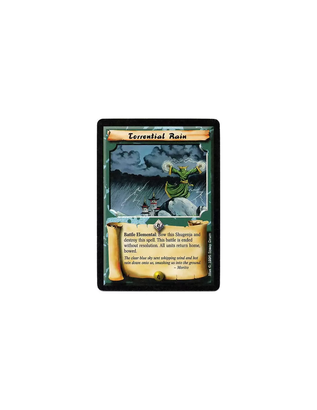 Elemental Battle : Bow this Shugenja and destroy this Spell to end this battle without resolution. All units go home bowed.
