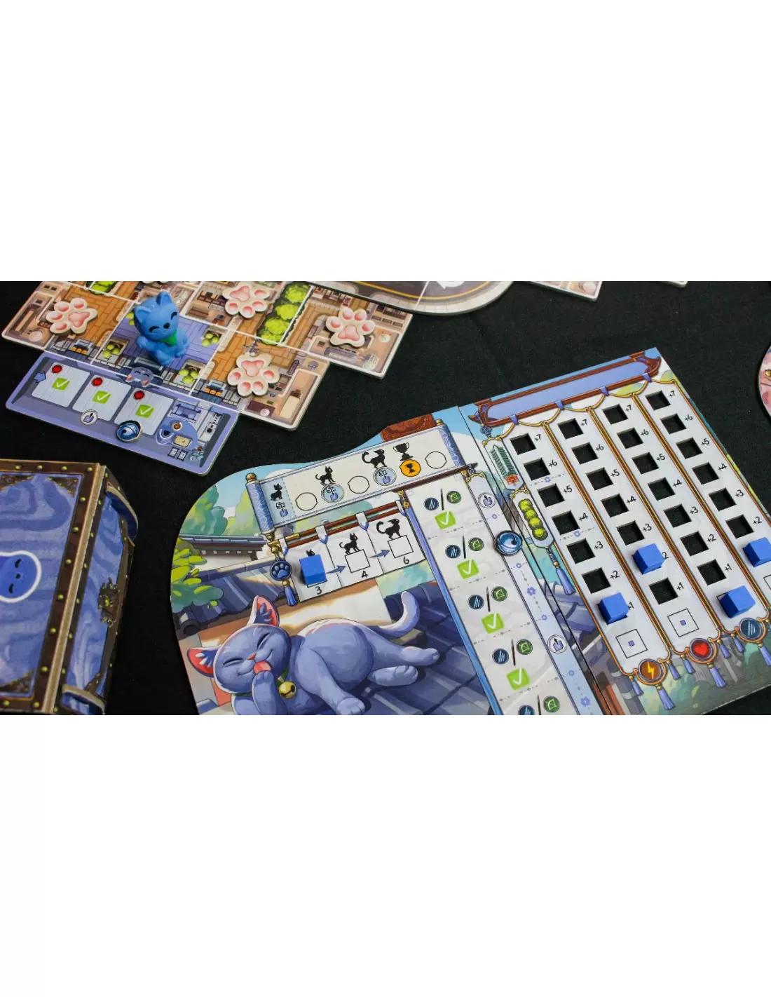 Mediante un sistema de habilidades, Kyoto no Neko hará que cada participante interactúe con algunos de los habitantes de Kyoto, tanto animales como humanos. Cada turno ofrece la oportunidad de descubrir algo nuevo sobre la ciudad, ya que los participantes revelarán elementos que van desde pequeños insectos hasta objetos o habitantes específicos de Kyoto. Mientras que algunos de estos elementos están representados por fichas de cartón, otros vienen como personajes de pie, lo que garantiza una presencia visual impresionante.