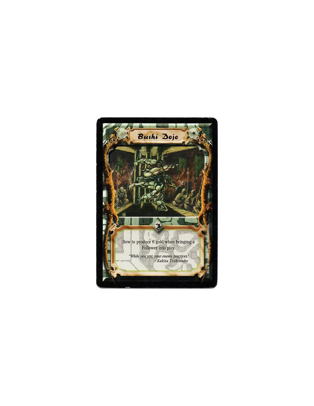Bushi Dojo  - Bow to produce 6 gold when bringing a Follower into play.