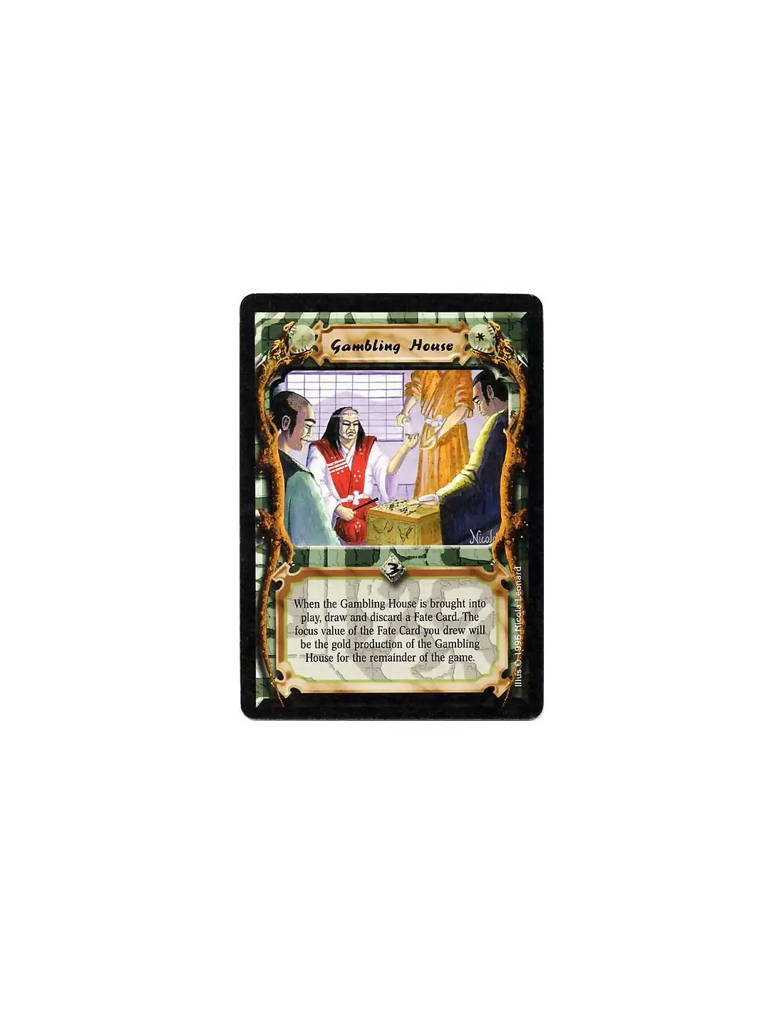 When the Gambling House is brought into play, draw and discard a Fate Card. The focus value of the Fate Card you drew will be the gold production of the Gambling House for the remainder of the game.