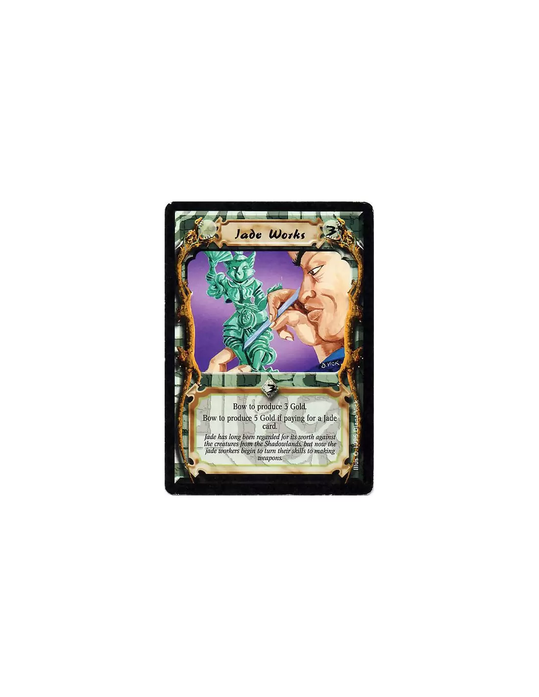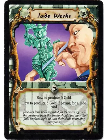 Bow the Jade Works to produce 3 Gold. Bow the Jade Works to produce 5 Gold when paying for a Jade card.