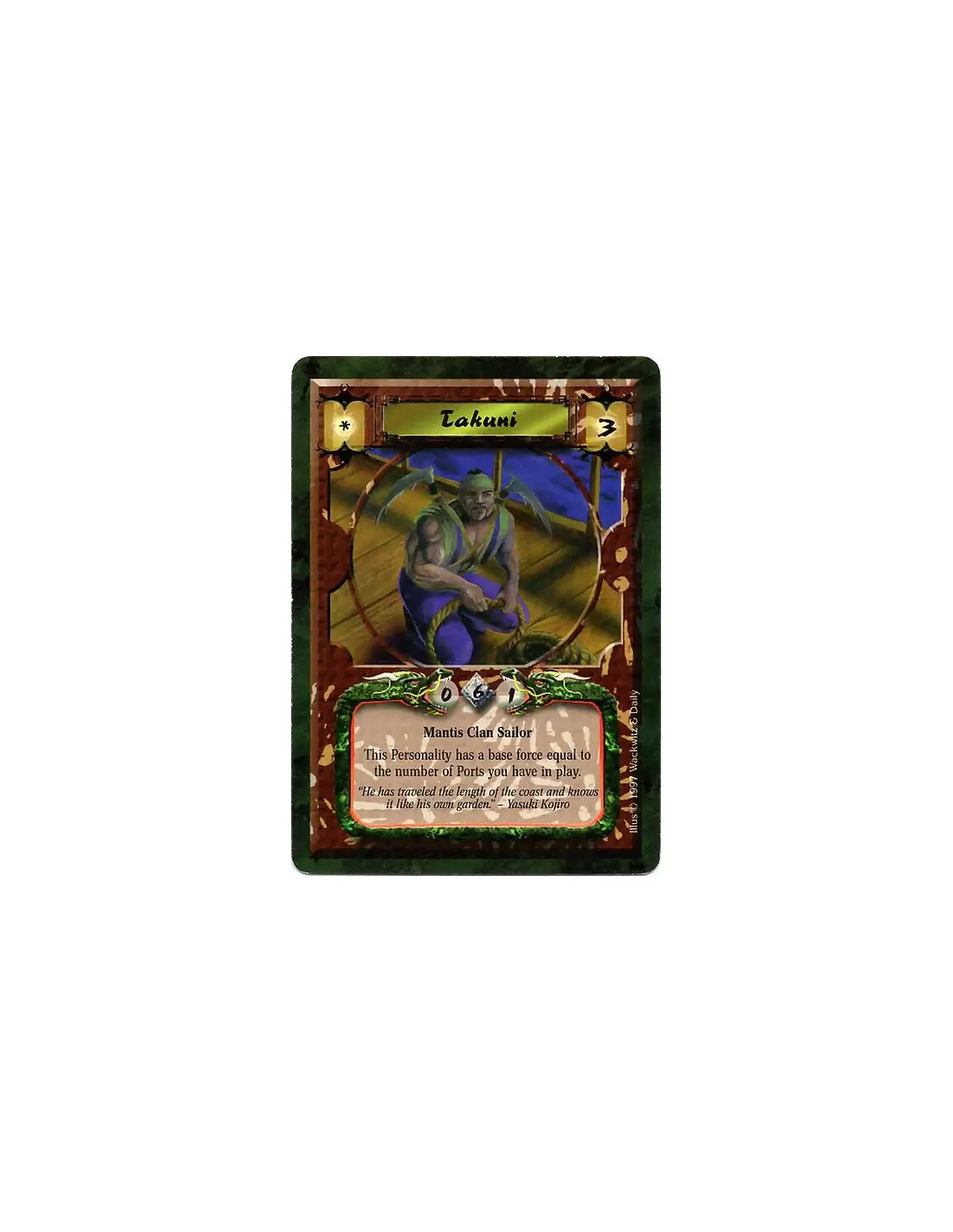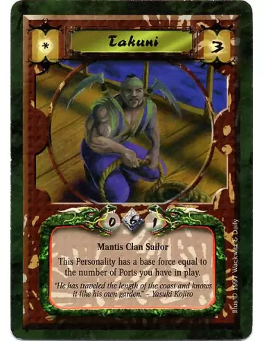 Mantis Clan Sailor Yoritomo Takuni has a base Force equal to the number of Ports you have in play.