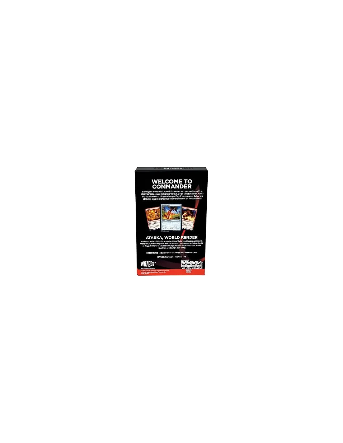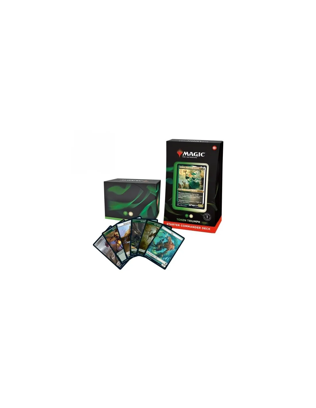 Each Commander Starter Deck includes one 100-card Magic ready-to-play deck (one foil engraved legendary commander card and 99 non-foil cards, including lands), 10 double-sided tokens, one deck box, punch-out counters, one strategy tip sheet, one Commander rules summary, and one reference card to see what you can do on your turn.