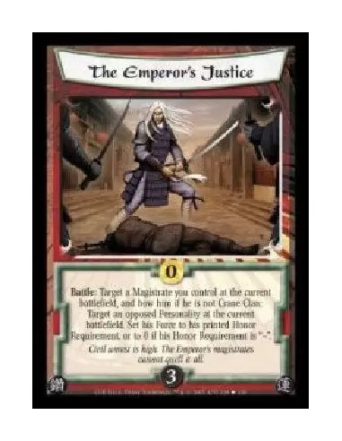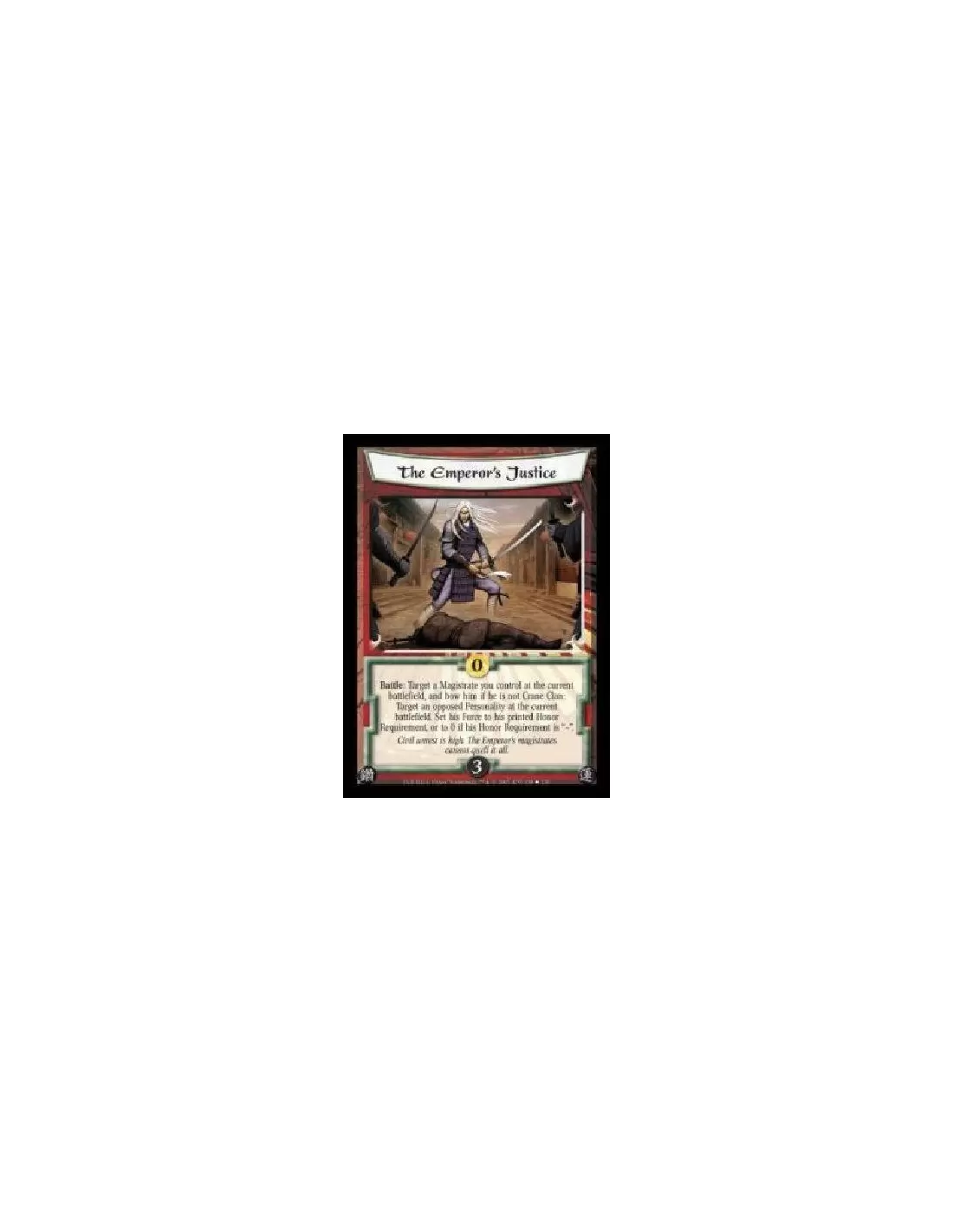 Battle: Target a Magistrate you control at the current battlefield, and bow him if he is not Crane Clan: Target an opposed Personality at the current battlefield. Set his Force to his printed Honor Requirement, or to 0 if his Honor Requirement is ???.