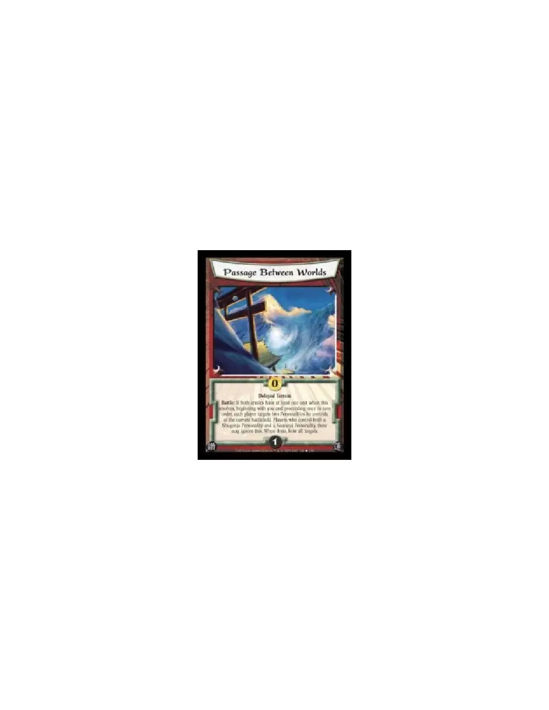 Delayed Terrain. Battle: If both armies have at least one unit when this resolves, beginning with you and proceeding once in turn order, each player targets two Personalities he controls at the current battlefield. Players who control both a Shugenja Personality and a Samurai Personality there may ignore this. When done, bow all targets