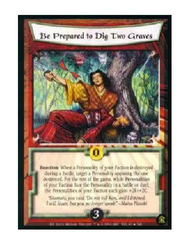 Reaction: When a Personality from your Faction is destroyed while in an battle, target a Personality opposing him. For the rest of the game, Personalities from your Faction gain +2F/+2C while facing the target in a battle or duel. This does not target the destroyed Personality.