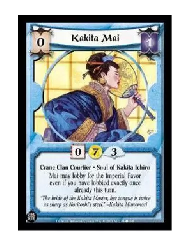 Crane Clan Courtier . Soul of Kakita Ichiro Mai may lobby for the Imperial Favor even if you have lobbied exactly once already this turn.