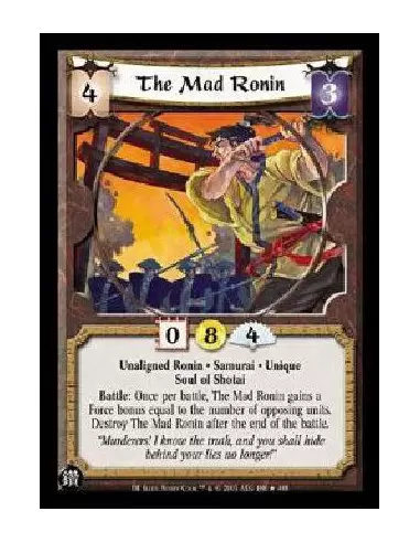 Unaligned Ronin * Samurai * Unique Soul of Shotai Battle: Once per battle, The Mad Ronin gains a Force bonus equal to the number of opposing units. Destroy The Mad Ronin after the end of the battle.