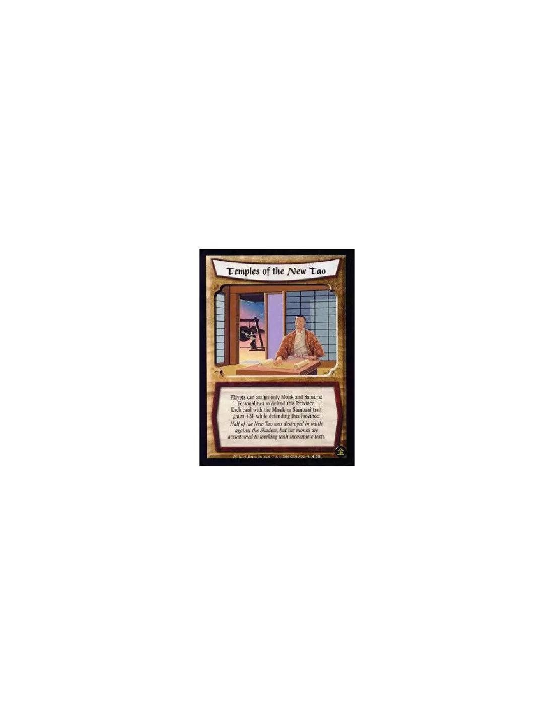 Singular Only Monk and Samurai Personalities may assign to defend this Province. (This does not prohibit moving into it.) Monks and Samurai gain +3F while defending this Province.