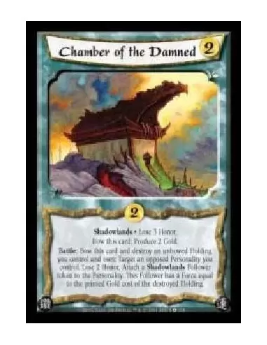 Shadowlands · Lose 3 Honor. Bow this card: Produce 2 Gold. Battle: Bow this card and destroy an unbowed Holding you control and own: Target an opposed Personality you control. Lose 2 Honor. Attach a Shadowlands Follower token to the Personality. This Follower has a Force equal to the printed Gold cost of the destroyed Holding.