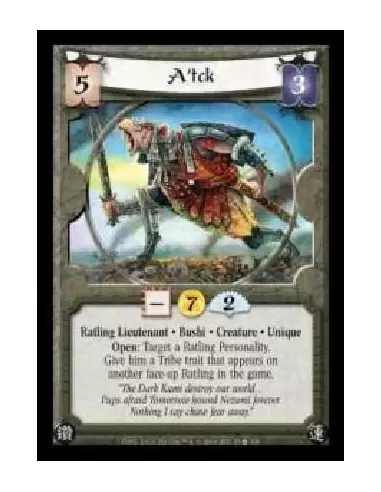 Ratling Liutenant · Bushi · Creature · Unique. Open: Target a Ratling Personality. Give him a Tribe trait that appears on another face-up Ratling in the game.