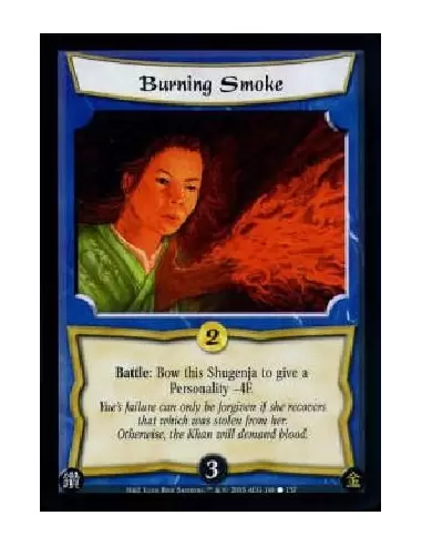 Battle: Bow this Shugenja to give a Personality -4F.Yue's failure can only be forgiven if she recovers that which was stolen from her. Otherwise, the Khan will demand blood.