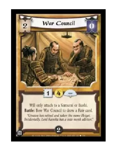 Will only attach to a Samurai or Bushi. Battle: Bow War Council to draw a Fate card.