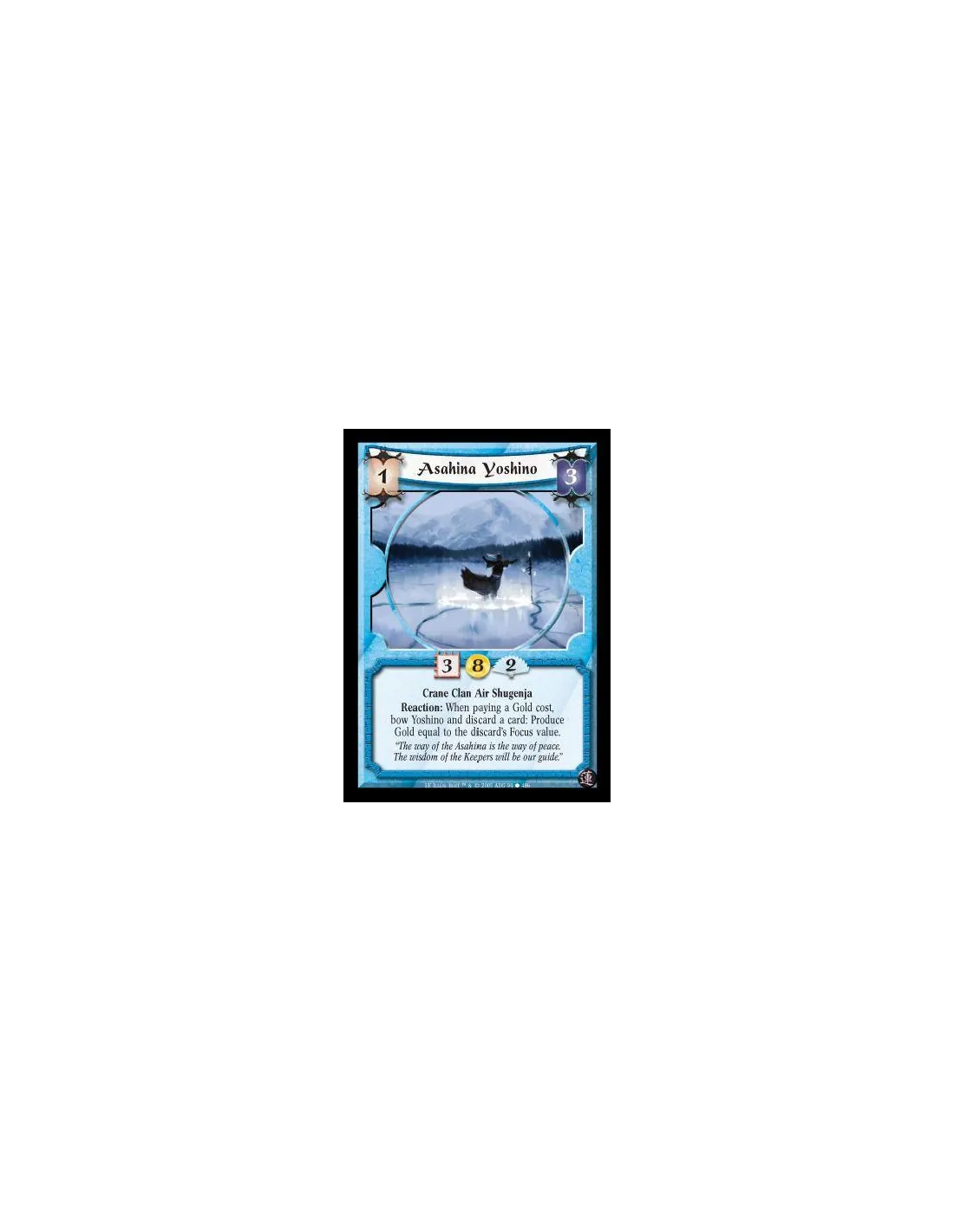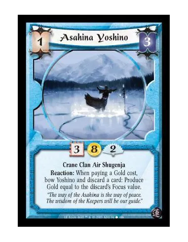 Crane Clan Air Shugenja. Reaction: When paying a Gold cost, bow Yoshino and discard a card: Produce Gold equal to the discard's Focus value