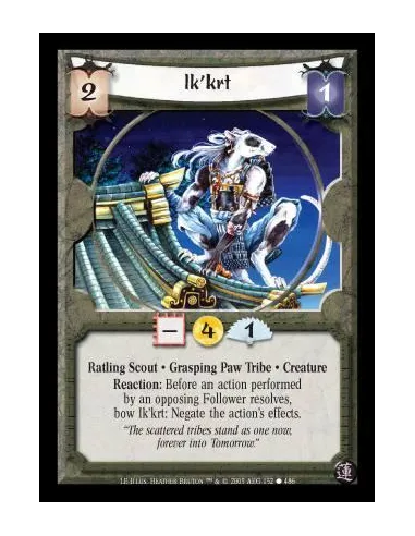 Ratling Scout · Grasping Paw Tribe · Creature. Reaction: Before an action performed by an opposing Follower resolves, bow Ik'krt: Negate the action's effects.