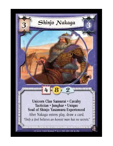 Unicorn Clan Samurai · Cavalry · Tactician · Junghar · Unique · Soul of Shinjo Yasamura Experienced. After Nakaga enters play, draw a card.