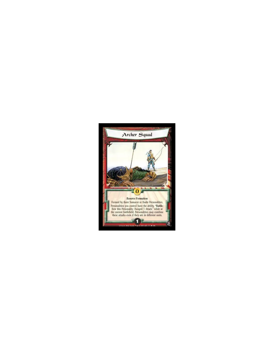 Reserve Formation. Formed by three Samurai or Bushi Personalities. Personalities you control have the ability, ?Battle: Bow this Personality: Ranged 3 Attack.? while at the current battlefield. Personalities may combine these attacks even if they are in different units