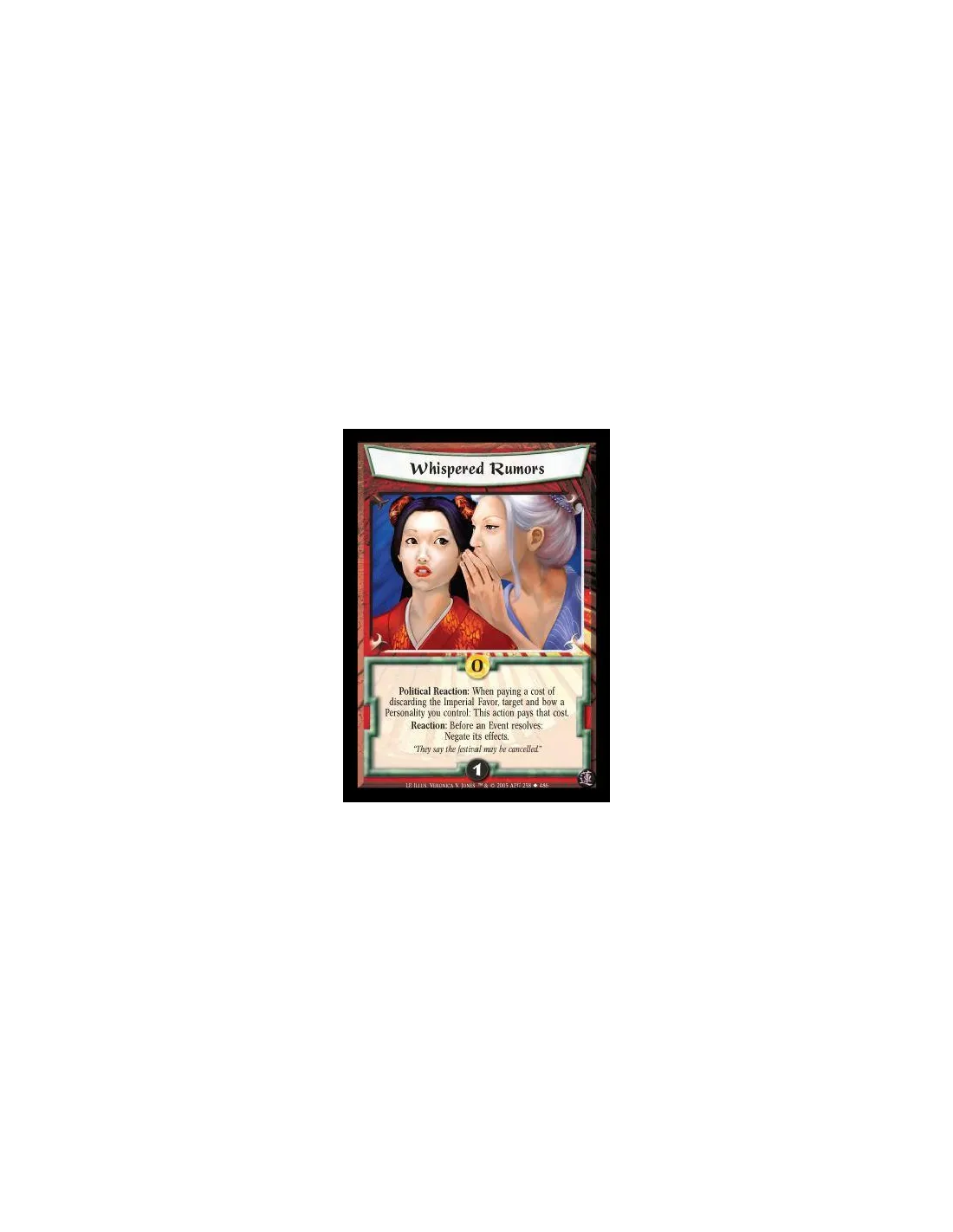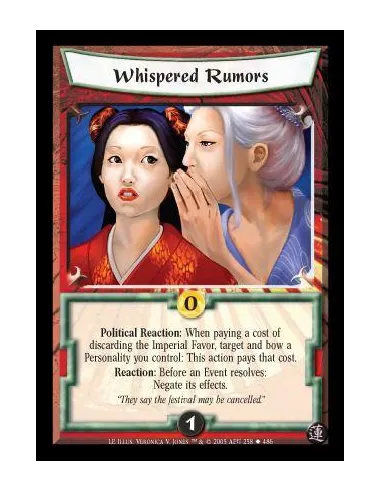 Political Reaction: When paying a cost of discarding the Imperial Favor, target and bow a Personality you control: This action pays that cost. Reaction: Before an Event resolves: Negate its effects