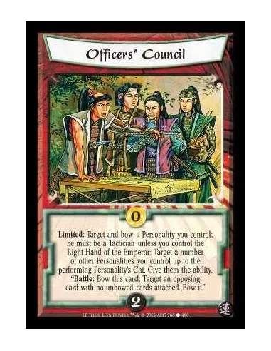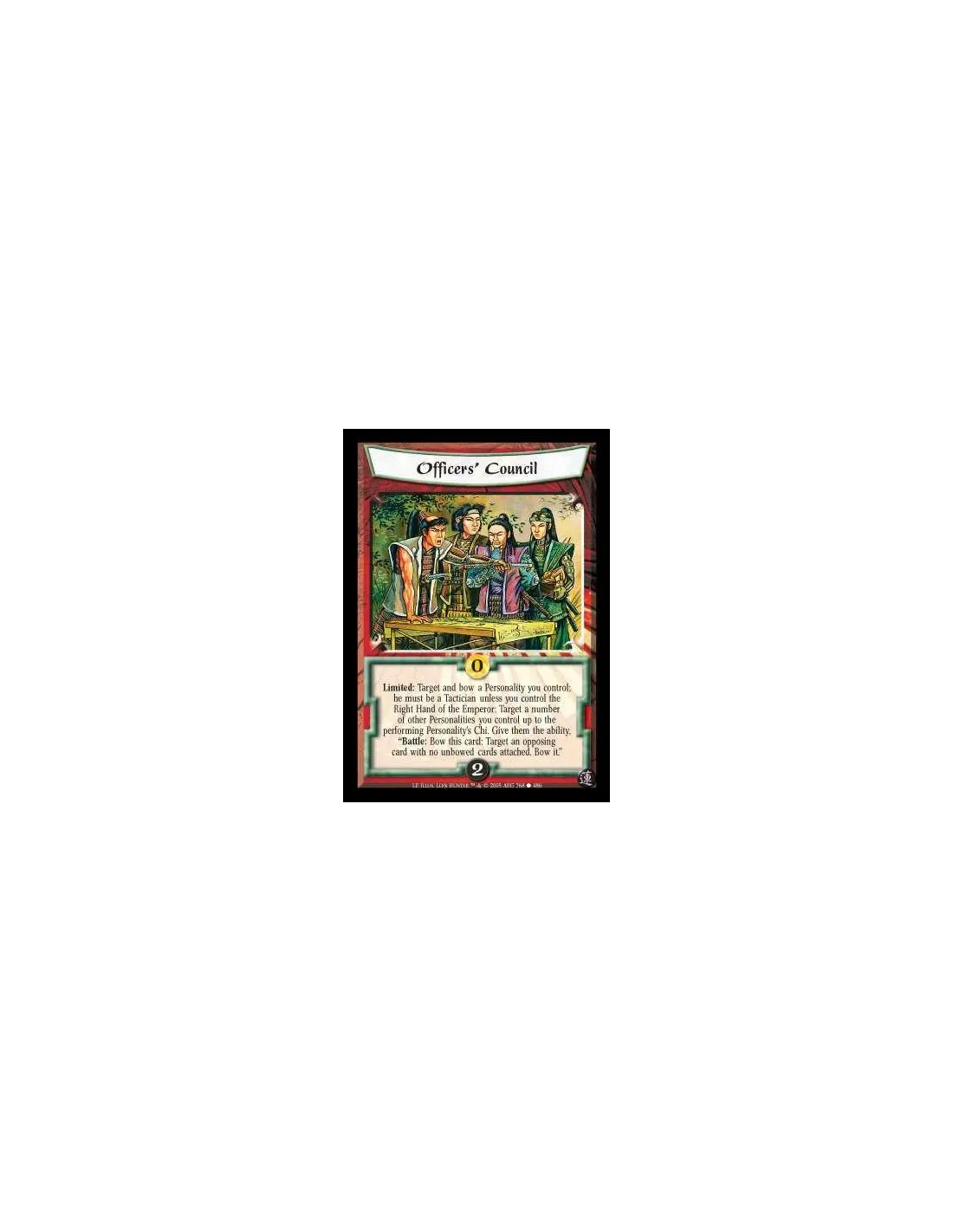 Limited: Target and bow a Personality you control; he must be a Tactician unless you control the Right Hand of the Emperor: Target a number of other Personalities you control up to the performing Personality's Chi. Give them the ability, ?Battle: Bow this card: Target an opposing card with no unbowed cards attached. Bow it.?